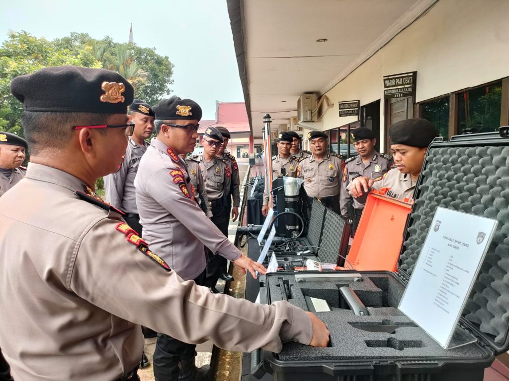 Pontianak, Polda Kalbar – Subsatgas Sterilisasi Direktorat Pengamanan Obyek Vital (Ditpamobvit) Polda Kalimantan Barat menggelar uji kesiapsiagaan alat dan material (almatsus) dalam rangka pengamanan Kampanye Rapat Umum Capres/Cawapres dikalbar Kegiatan tersebut digelar di Mako Ditpamobvit Polda Kalbar, Selasa (23/1).