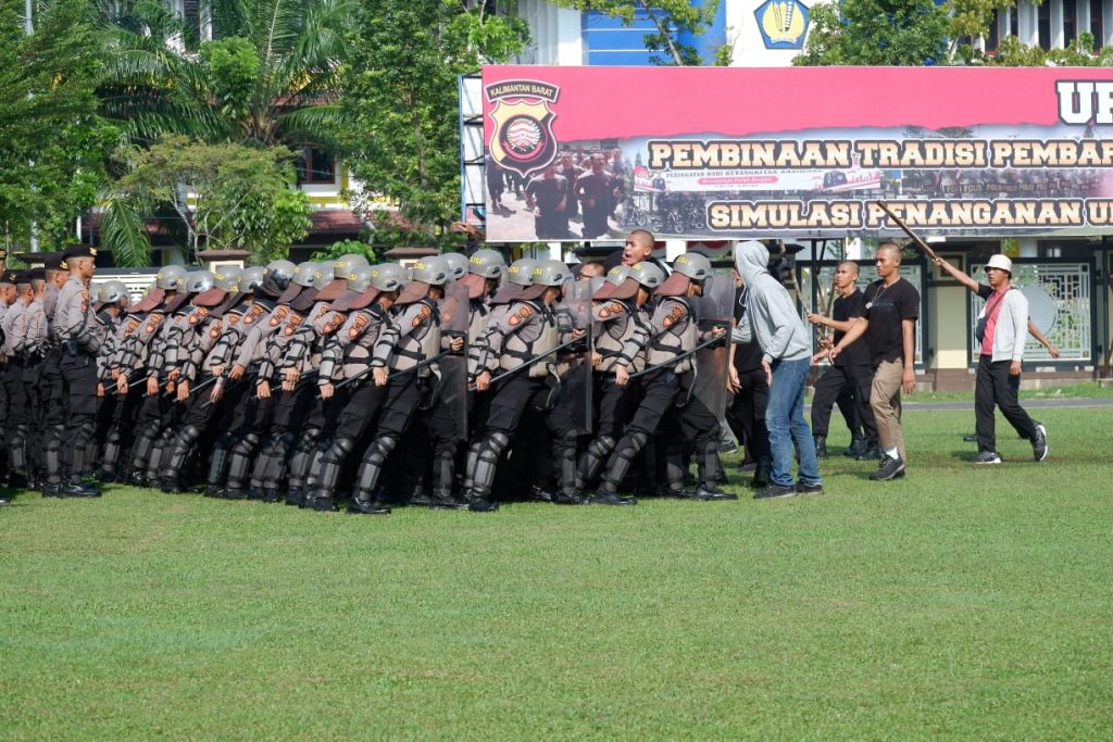 “Power On Hand Kapolda Kalbar atau kompi kerangka dalmas yang berisikan personil Staff Mapolda Kalbar dilatih dalam menghadapi Pengendalian massa mulai dari massa yang tertib seyerusnya hingga massa yang anarkis.