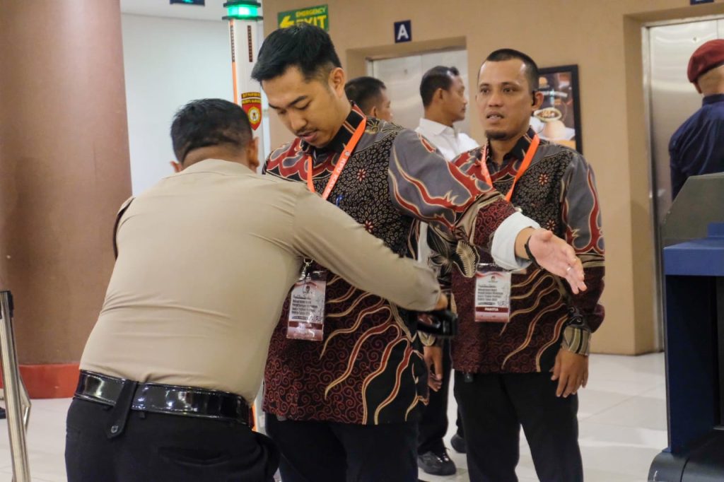 Subsatgas Pam Obvit OMB Kapuas 2024 melaksanan pemeriksaan berlapis kepada para peserta dan tamu Rapat Pleno.