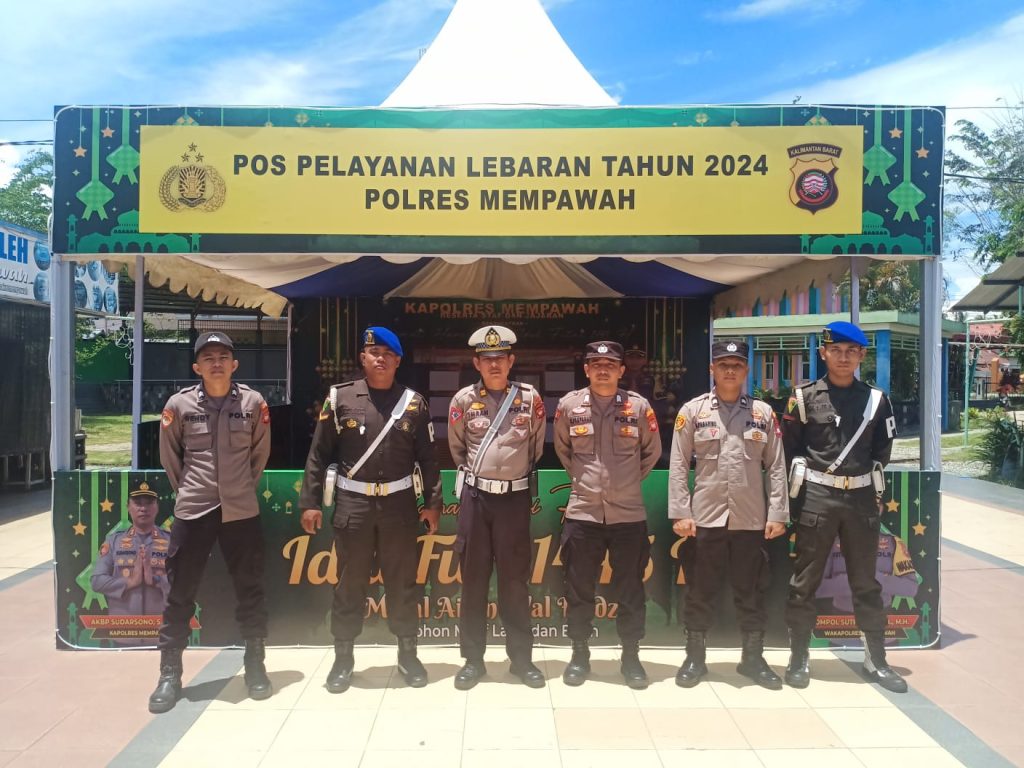 “Untuk pengamanan selama Idul Fitri 1445 H, Polres Mempawah sudah mendirikan dua pos, yakni di titik kota (Terminal Mempawah), dan di Sungai Pinyuh. Bertujuan untuk memberikan pelayanan dan memastikan keamanan selama Idul Fitri,” tegas Kapolres Mempawah AKBP Sudarsono.