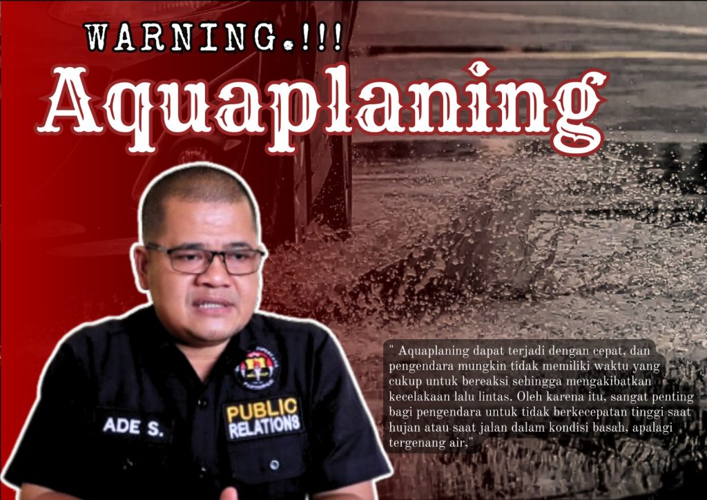 ” Aquaplaning itu satu kondisi di mana ban kendaraaan yang tidak layak (botak) tidak dapat mencerkam permukaan jalan raya karena basah atau tergenang air sehingga licin, ketika kendaraan digas, ban tersebut akan slip sehingga seperti terbang, sehingga dapat mengakibatkan kecelakaan lalu lintas,”terang Ade, Rabu (17/4/24) petang.