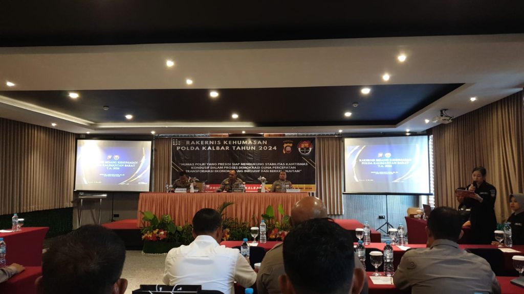 “Selain itu, rakernis ini juga merupakan sarana untuk kita bersama-sama mendukung program pemerintah pada tahun 2024, yang menitikberatkan pada percepatan transformasi ekonomi sehingga pertumbuhan ekonomi Indonesia dengan dipengaruhi oleh perkembangan situasi secara nasional, regional maupun internasional dapat tetap tumbuh dan berkembang dengan baik. Sejalan dengan hal tersebut, Rakernis Humas Polda Kalbar Tahun 2024 mengangkat tema Humas Polri yang Presisi Siap Mendukung Stabilitas Kamtibmas yang Kondusif dalam Proses Demokrasi Guna Percepatan Transformasi Ekonomi yang Inklusif dan Berkelanjutan,” ujar Kombes. Pol. Raden Petit Wijaya, S.I.K., M.M.