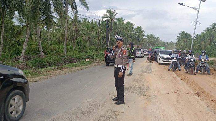Perbaikan Jalan Senggiring, Personel Satlantas Polres Mempawah Turun Atur Lalulintas