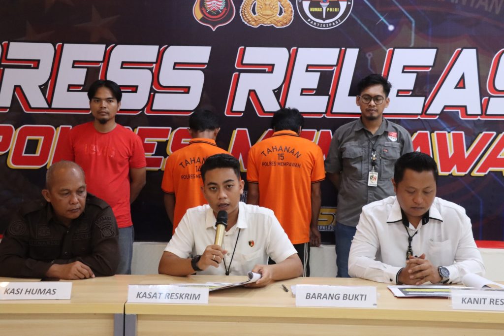 Informasi tersebut didapat saat digelar Press Release yang dipimpin langsung oleh Kasat Reskrim Polres Mempawah Iptu Fadhila Nugrah Sakti, didampingi Kasi Humas AKP Suwanto, dan Kanit Reskrim Polsek Jongkat Aiptu Gentur Sutopo. Bahkan dua tersangka ikut dihadirkan dalam Press Release tersebut.
