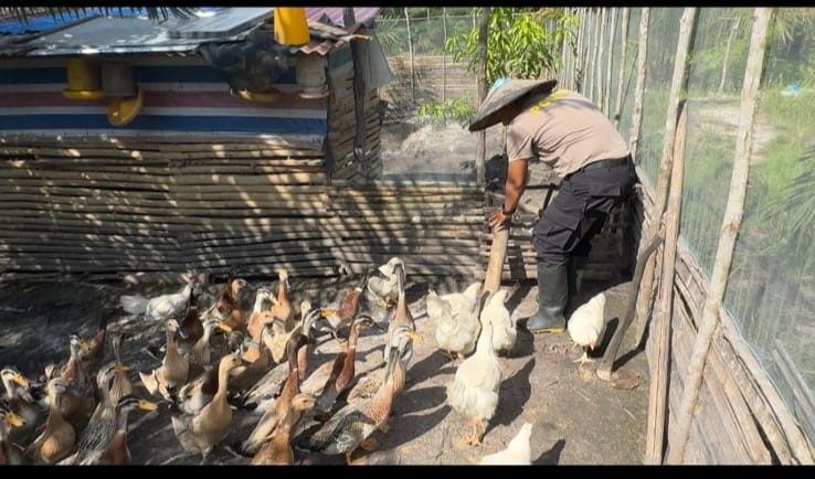 Polres Melawi Polda Kalbar – Aiptu Yanto kesehariannya bertugas sebagai Ps Paur Dalpers Bagian Sumber Daya Manusia Polres Melawi mendukung program ketahanan pangan pemerintah, langkah nyata dibuktikan dengan melakukan pembukaan lahan di Dusun Pedomai Desa Pemuar Kecamatan Belimbing untuk peternakan bebek petelur jenis ratu dan alabio selain itu juga ada peternakan ayam buras.
