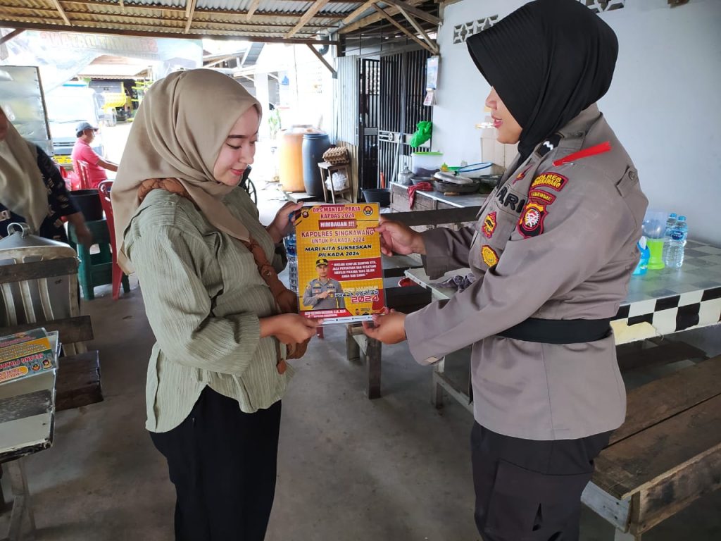 SINGKAWANG, Polda Kalbar- Polres Singkawang, Dalam rangka menciptakan situasi keamanan dan ketertiban masyarakat (Kamtibmas) yang kondusif selama tahapan kampanye Pemilihan Wali Kota dan Wakil Wali Kota Singkawang, Subsatgas Binmas Satgas Preemtif Ops Mantap Praja Kapuas 2024 Polres Singkawang mengintensifkan kegiatan penyuluhan, edukasi, sosialisasi, dan himbauan kepada masyarakat Kota Singkawang, Jum’at (8/11/24).