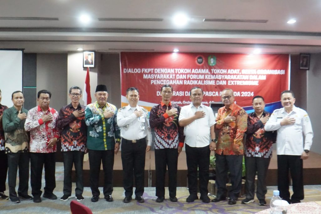 Pontianak,Polda Kalbar – Satgas Operasi Mantap Praja Polda Kalbar menghadiri kegiatan Deklarasi Damai Pasca Pilkada 2024 yang diselenggarakan untuk menjaga situasi tetap kondusif dan aman setelah pelaksanaan Pemilihan Kepala Daerah. Dalam kegiatan ini, turut hadir Kasubdit 4 Kamneg Ditintelkam Polda Kalbar, AKBP M. Panggaribuan, serta Kepala Kesbangpol Kalbar, Bapak Manto. Kamis (05/12)