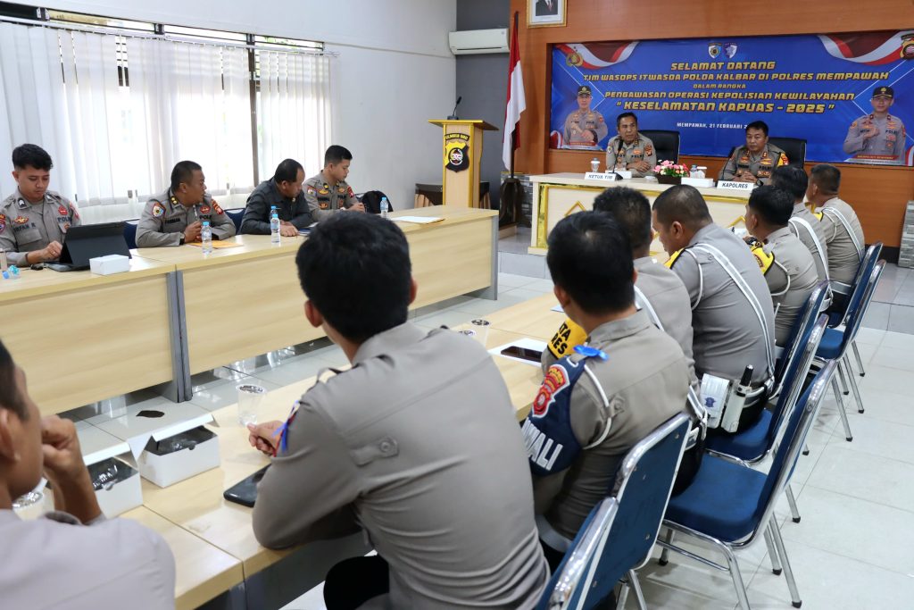 MEMPAWAH – Tim Itwasda Polda Kalbar melaksanakan Pengawasan Operasi (Wasops) Keselamatan Kapuas 2025 di Polres Mempawah, Jumat 21 Februari 2025.