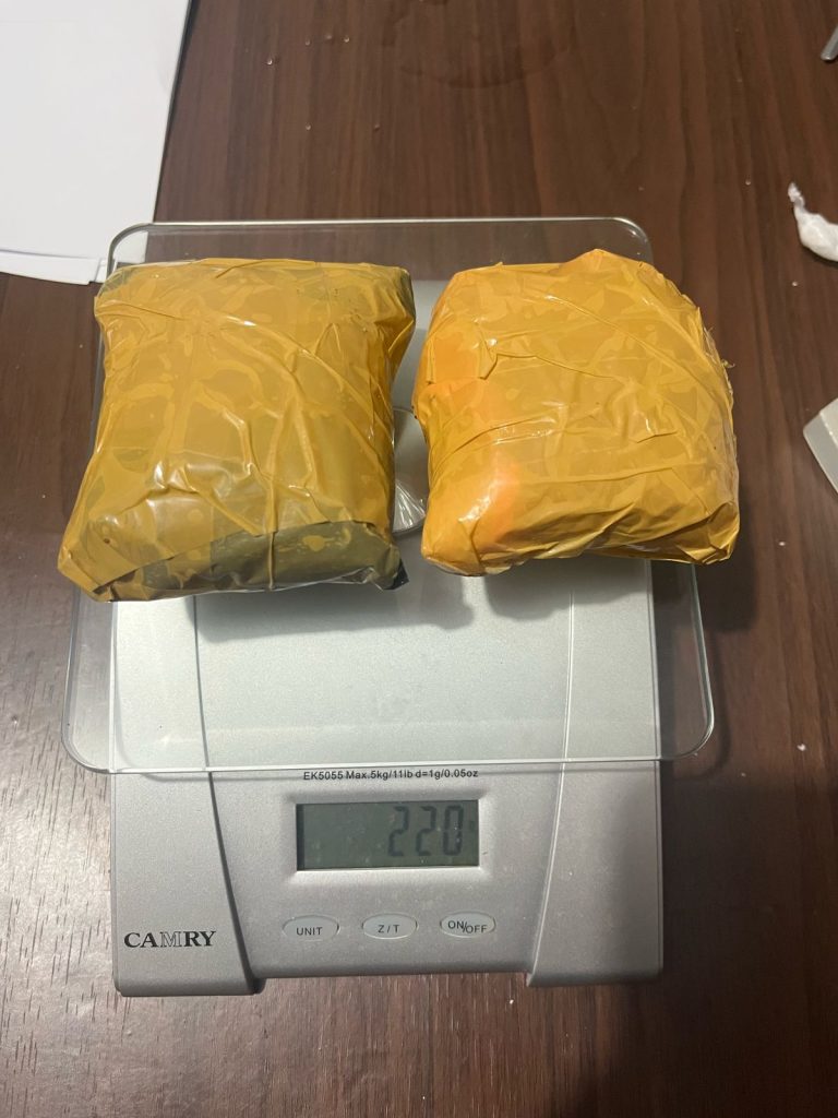 Saat dilakukan penggeledahan, petugas menemukan barang bukti berupa dua bungkus klip plastik warna coklat yang berisi narkotika jenis sabu dengan berat bruto 220 gram. Selain itu, turut disita beberapa barang milik tersangka,1 unit hp Redmi, 1 unit hp Oppo,1 unit hp Samsung, 1 unit mobil Toyota Avanza warna hitam.