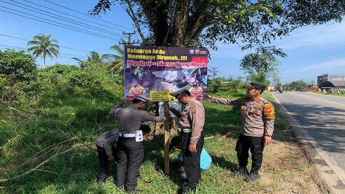 Kapolsek Jongkat Sebar Banner Imbauan, Tekan Laka Lantas Menjelang Mudik Idul Fitri 1446 H