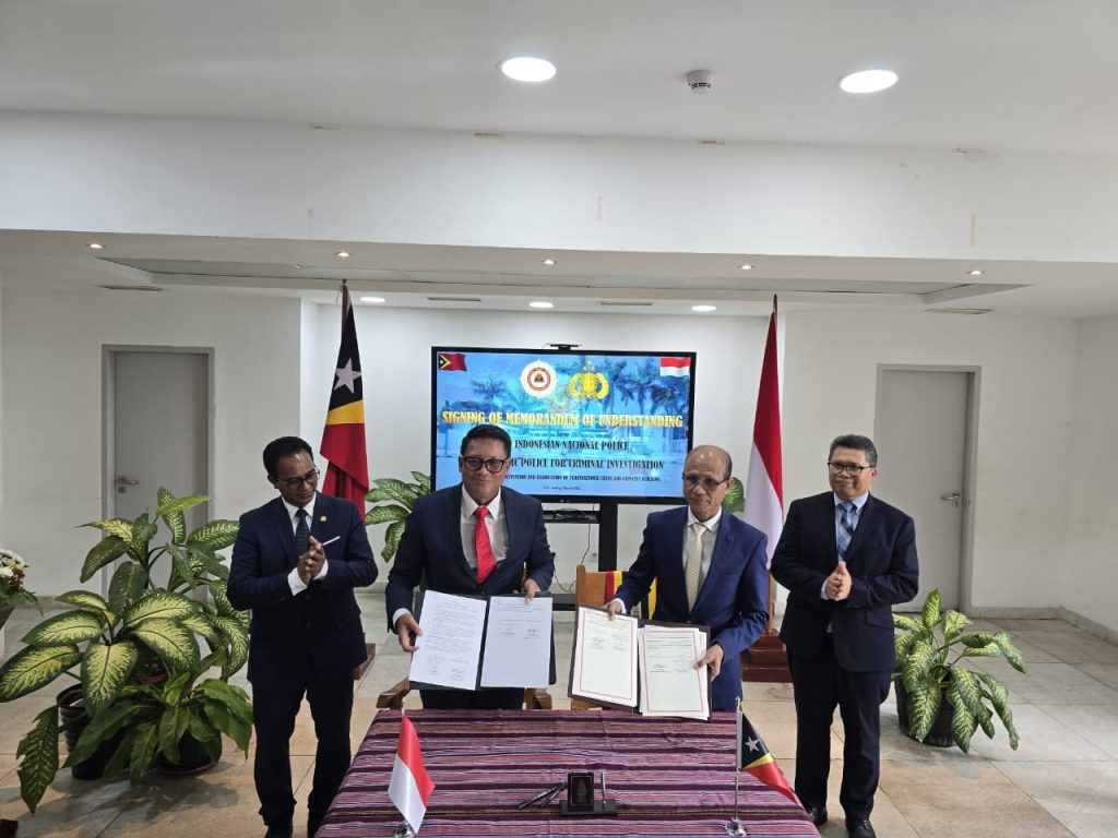 Polri bersama Policia Cientifica de Investigasaun Criminale (PCIC) Timor Leste resmi menandatangani Nota Kesepahaman (MoU) untuk memperkuat kolaborasi dalam menangani kejahatan transnasional yang kian kompleks di kawasan Asia Tenggara.