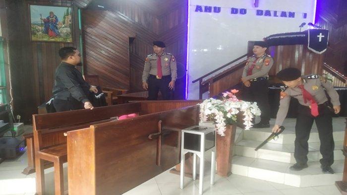 Selama kegiatan pengamanan, tim melakukan sterilisasi ruang tempat peribadatan dan sekitar lingkungan gereja untuk memastikan kenyamanan jemaat dalam beribadah.