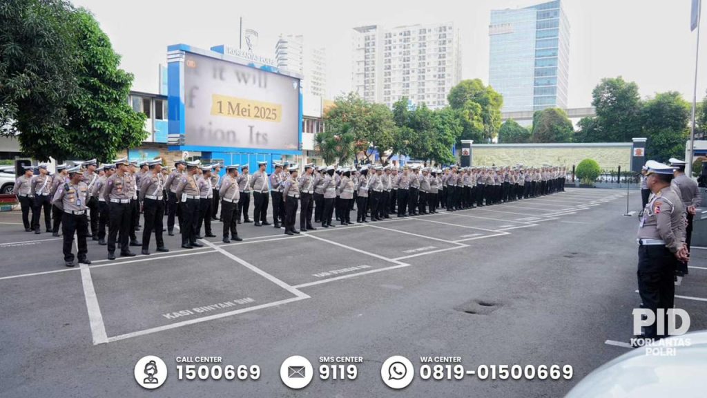 Jakarta – Korps Lalu Lintas (Korlantas) Polri menggelar apel pengamanan dalam rangka peringatan Hari Buruh Internasional atau May Day yang jatuh pada Rabu (1/5/2025). Apel tersebut dipimpin langsung oleh Direktur Keamanan dan Keselamatan (Dirkamsel) Korlantas Polri Brigjen Pol Bhakarudin Muhammad Syah.