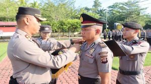 MEMPAWAH - Kapolres Mempawah, AKBP Jonathan David Harianthono, memimpin upacara kenaikan pangkat pengabdian personel Polres Mempawah, Tri Asto, dari AKP...