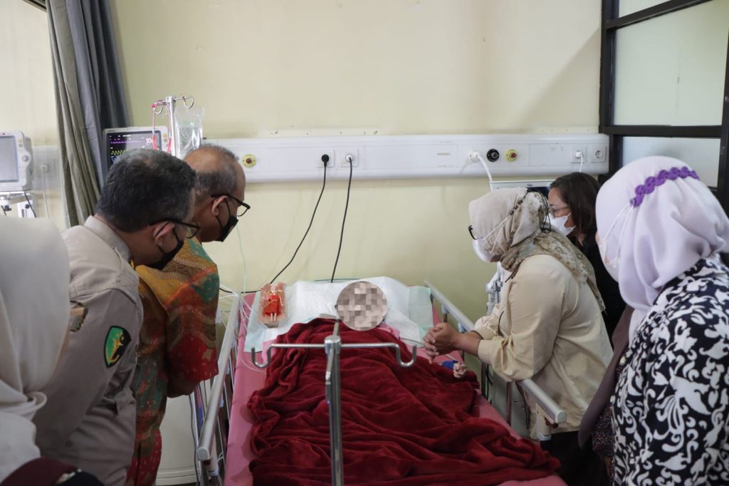 Didampingi jajaran Kementerian PPPA serta pihak Rumah Sakit Bhayangkara Tk.I, diwakili Oleh Ka Kommed Kombes Pol dr. Sigit Wedhanto, SpOrt (K), Kabid Yanmedwat Kombes Pol dr. Agung Widodo, Sp.M & Kabagrenmin Kombes Pol dr. Sumarsono, Sp. Rad, MM, Ibu Menteri mendatangi ruang perawatan PICU tempat sang anak dirawat. Dalam suasana penuh empati, beliau menyapa langsung korban dengan harapan dapat memberikan semangat serta dukungan moral yang sangat dibutuhkan di tengah proses pemulihan.