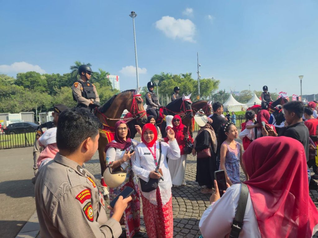 Di tengah keramaian dan semangat nasionalisme yang membuncah, kehadiran pasukan berkuda Turangga Polri menjadi daya tarik tersendiri bagi masyarakat. Tidak hanya menjalankan fungsi pengamanan, pasukan berkuda juga menciptakan suasana yang lebih humanis dan bersahabat di tengah perayaan nasional tersebut.