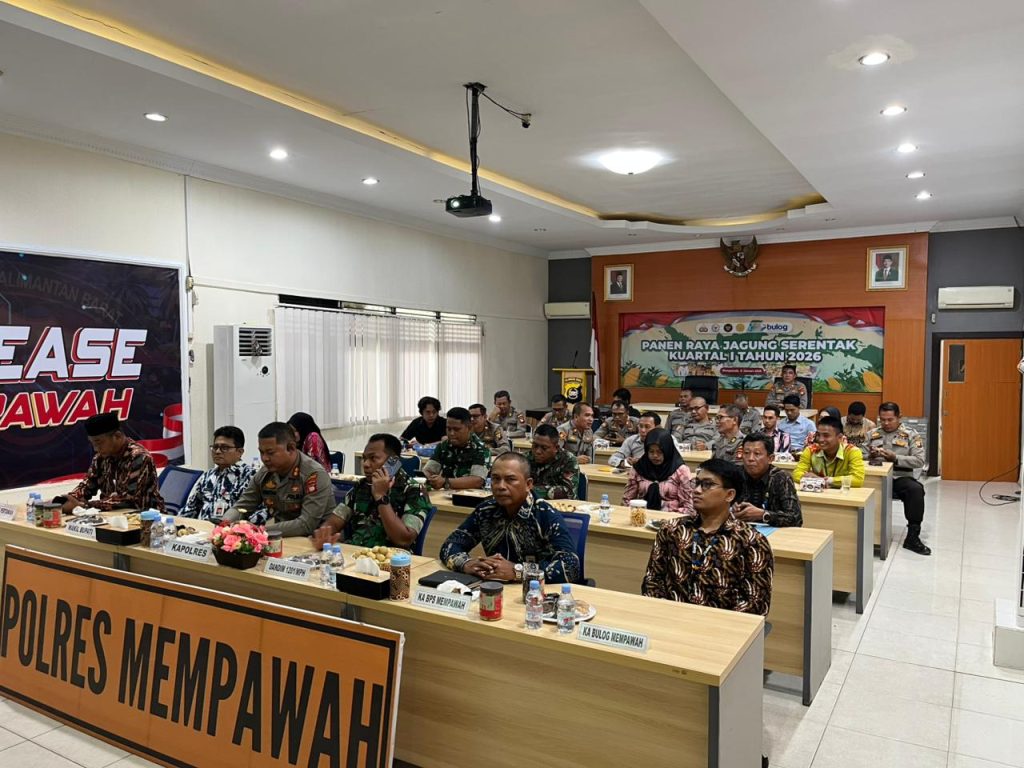 Mempawah- Polres Mempawah mengikuti kegiatan Zoom Meeting dan Panen Raya Jagung Serentak Kuartal I Tahun 2026 yang digelar secara nasional, Kamis, 8 Januari 2025, bertempat di Ruang Rupatama Polres Mempawah. Kegiatan ini menjadi bagian dari komitmen Polri dalam mendukung program Swasembada Pangan Nasional, khususnya komoditas jagung.